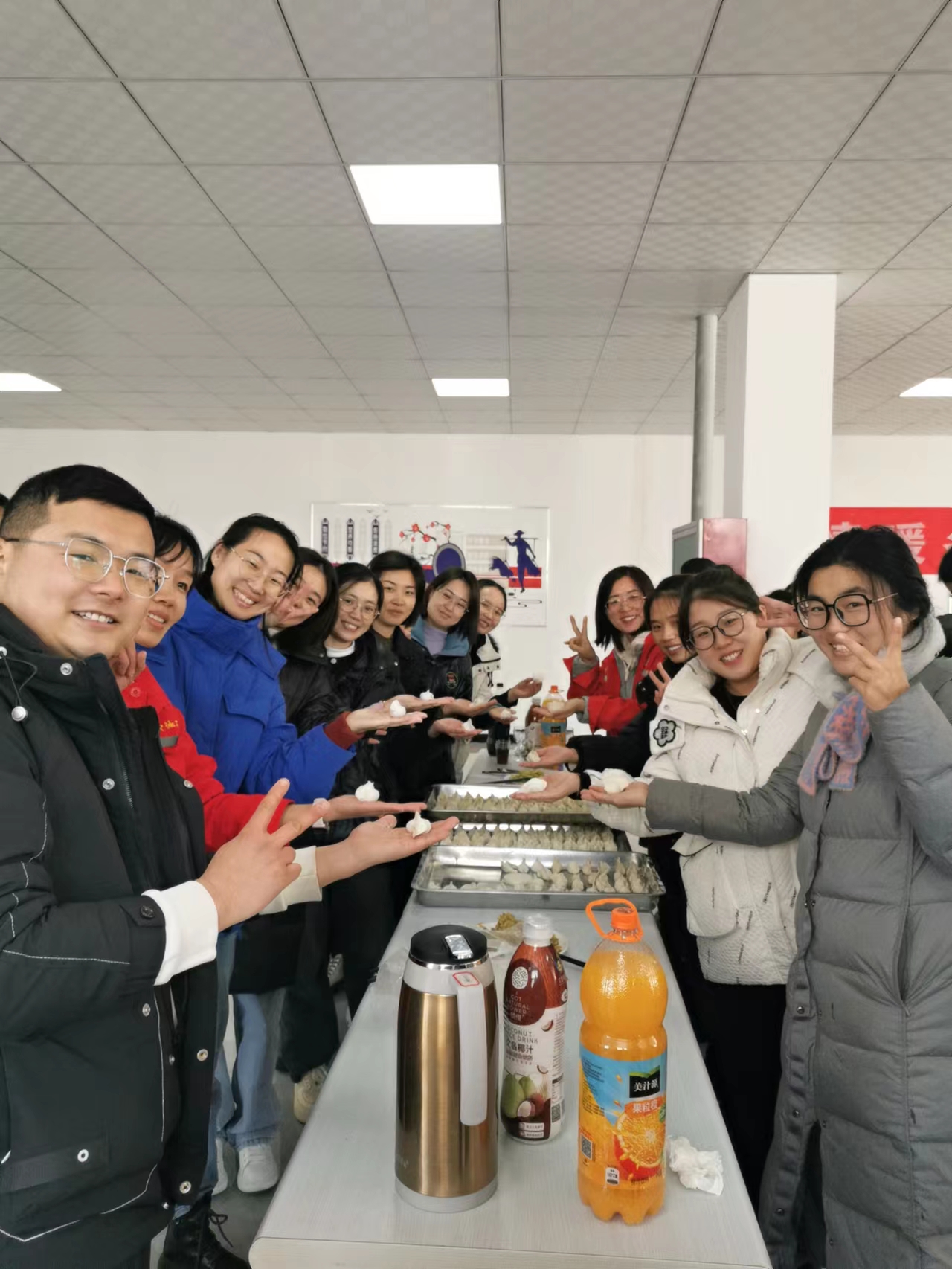 冬至如小年,員工自己動手,餃子包了一盤又一盤,煮熟的餃子香氣沁人。現(xiàn)場歡聲笑語,其樂融融。熱騰騰的餃子暖身暖心。員工品嘗著不同味道的餃子,忘記了寒冷,大廳成了幸福的樂園。