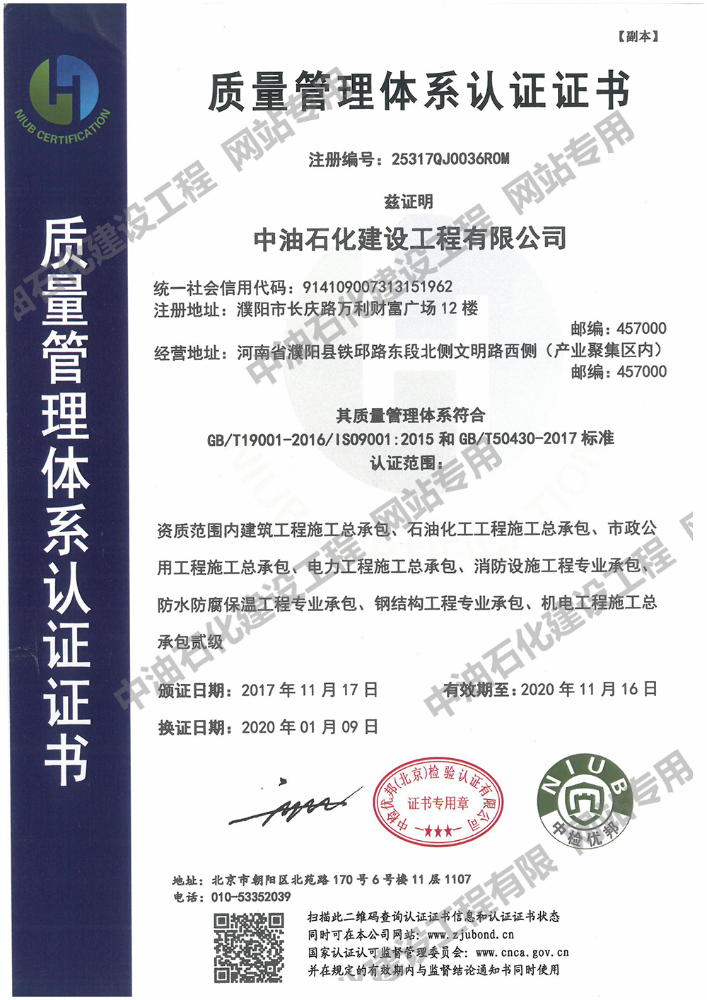 質(zhì)量管理體系認(rèn)證證書(shū)